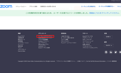 Zoom公式Webページからセットアップファイルをダウンロードする。